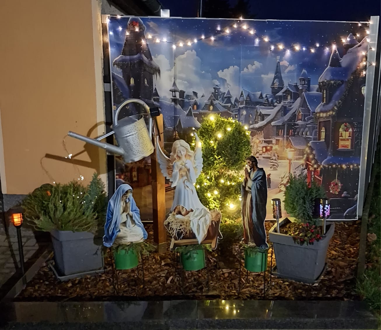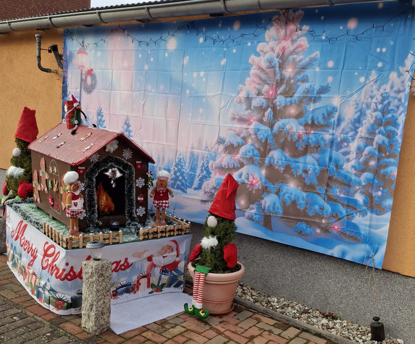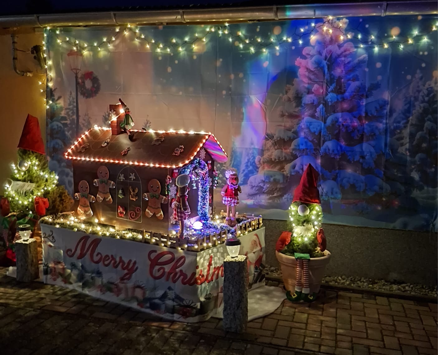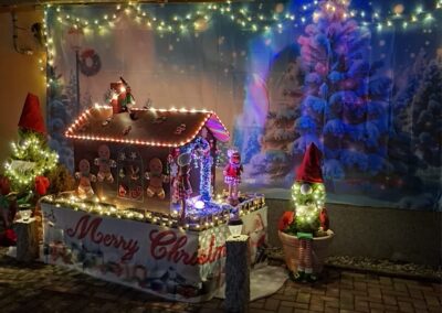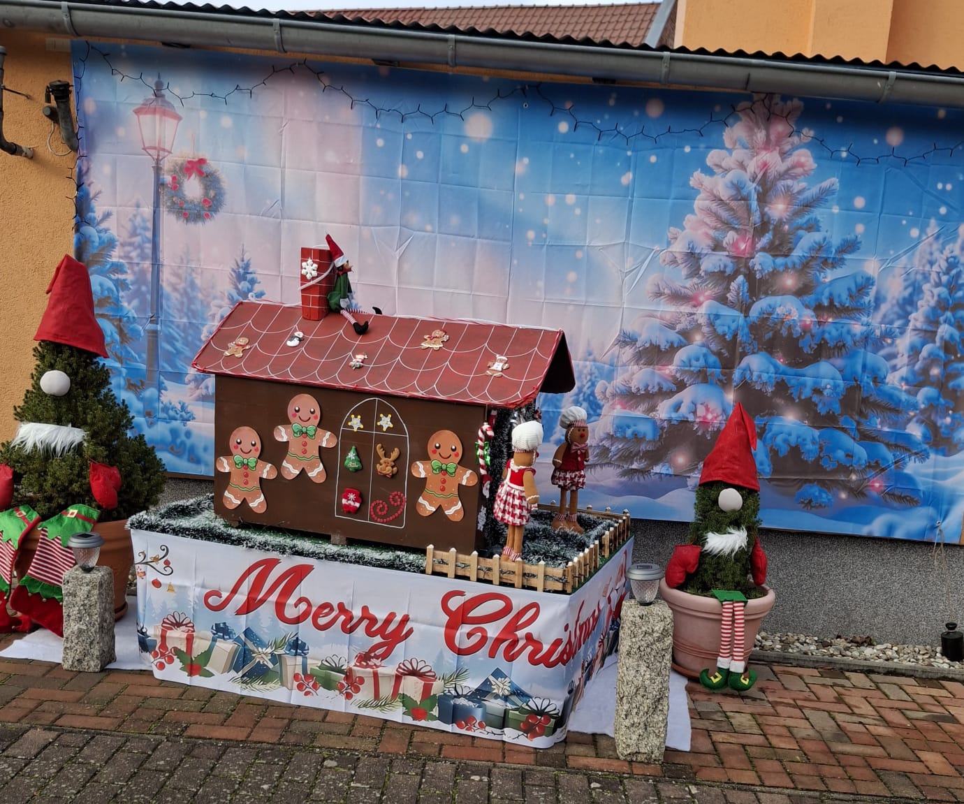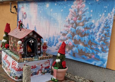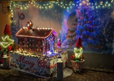 In vielen Arbeitsstunden haben auch in diesem Jahr Anneliese und Bernd diese zauberhafte Weihnachtsdekoration gestaltet. Das liebevoll geschmückte Lebkuchenhaus, die kleinen Wichtel, die Geburt von Jesus und die festliche Beleuchtung sollen allen Besucherinnen und Besuchern ein Lächeln ins Gesicht zaubern und ein Stück Adventsfreude schenken.