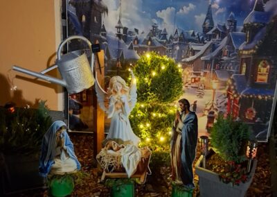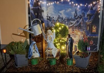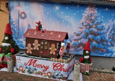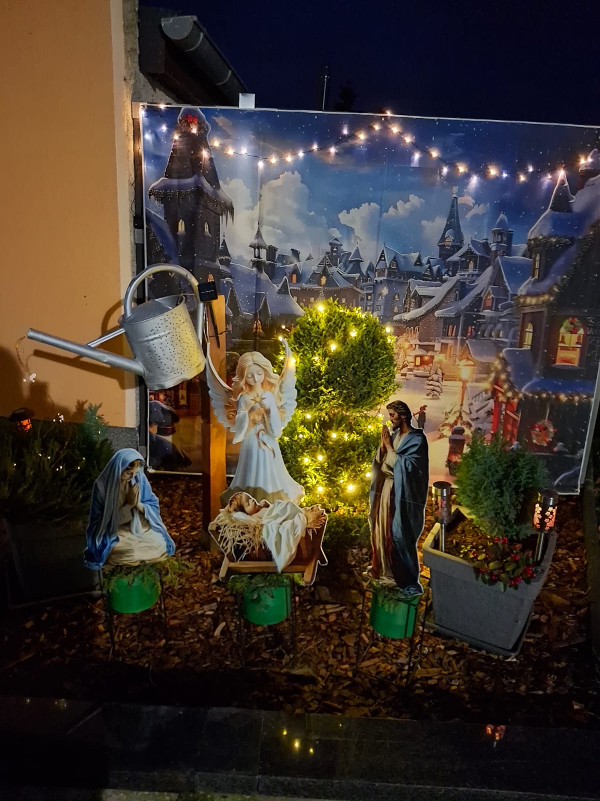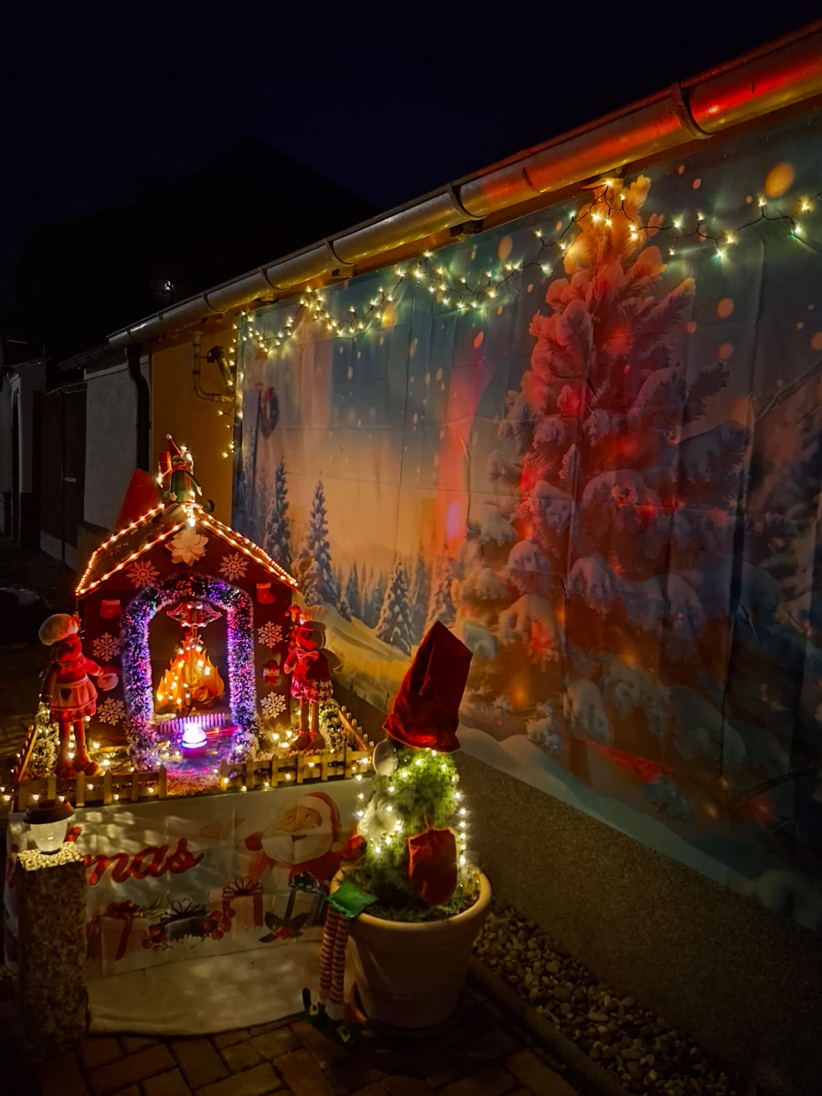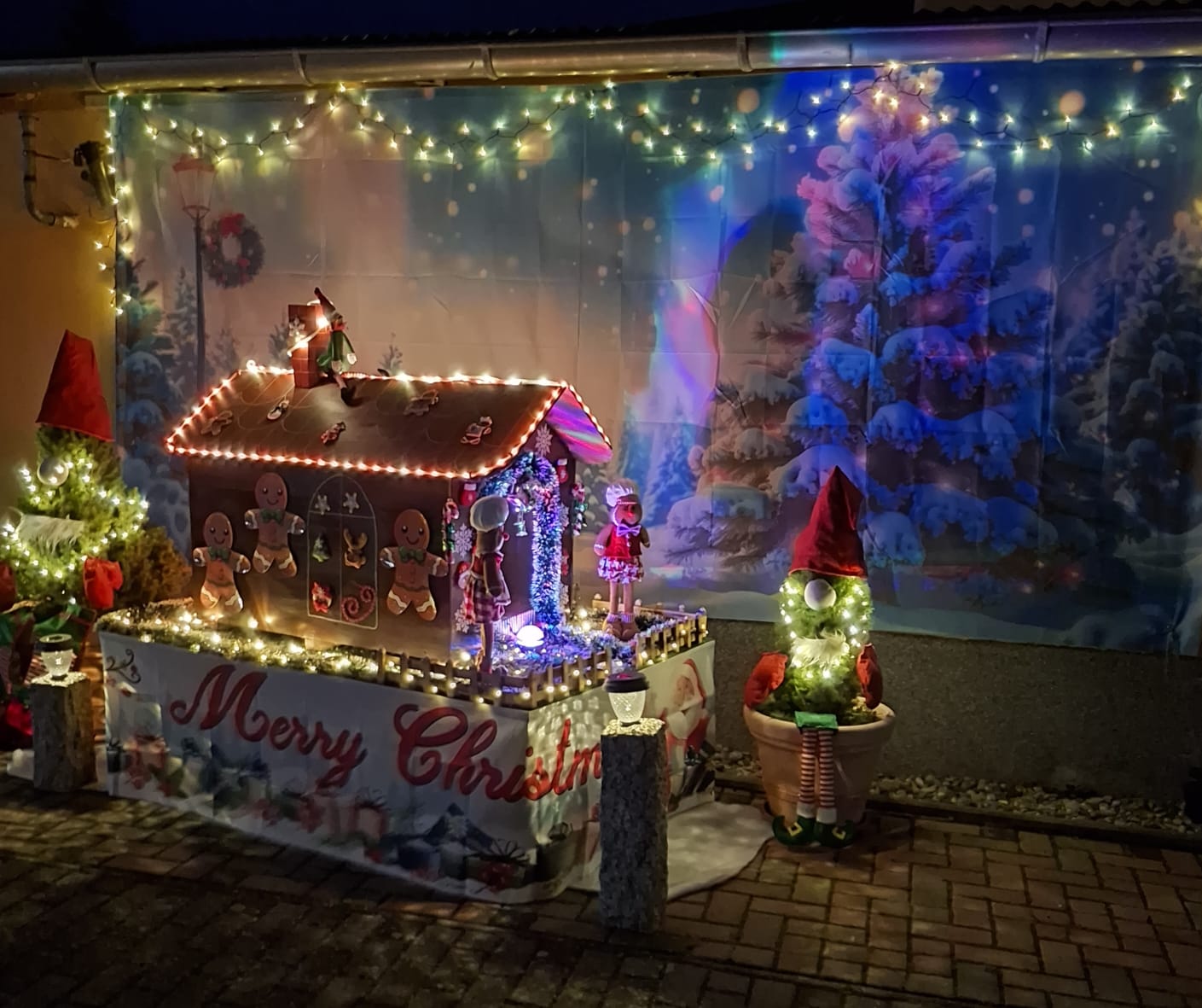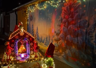 In vielen Arbeitsstunden haben auch in diesem Jahr Anneliese und Bernd diese zauberhafte Weihnachtsdekoration gestaltet. Das liebevoll geschmückte Lebkuchenhaus, die kleinen Wichtel, die Geburt von Jesus und die festliche Beleuchtung sollen allen Besucherinnen und Besuchern ein Lächeln ins Gesicht zaubern und ein Stück Adventsfreude schenken.