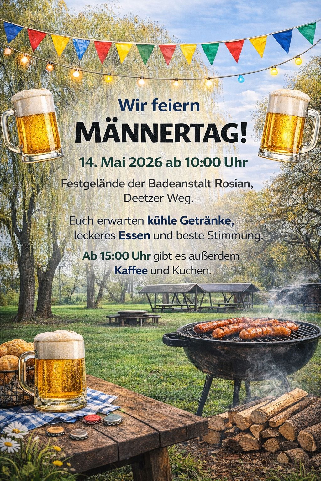 Himmelfahrt 19 Apr. 2026 Wann? 14. Mai ab 10 Uhr Wo? Badeanstalt Rosian Was? Männertagsfeier mit kühlen Getränken und leckerem Essen. Kaffee und Kuchen ab 15 Uhr