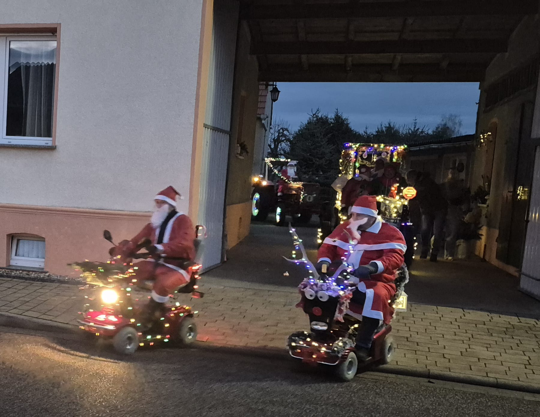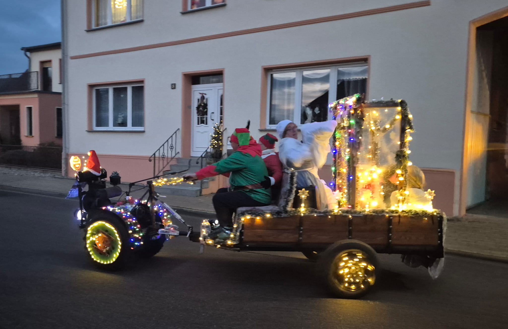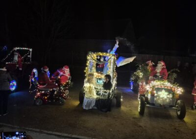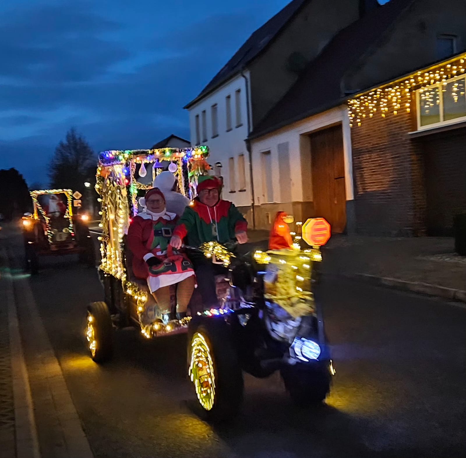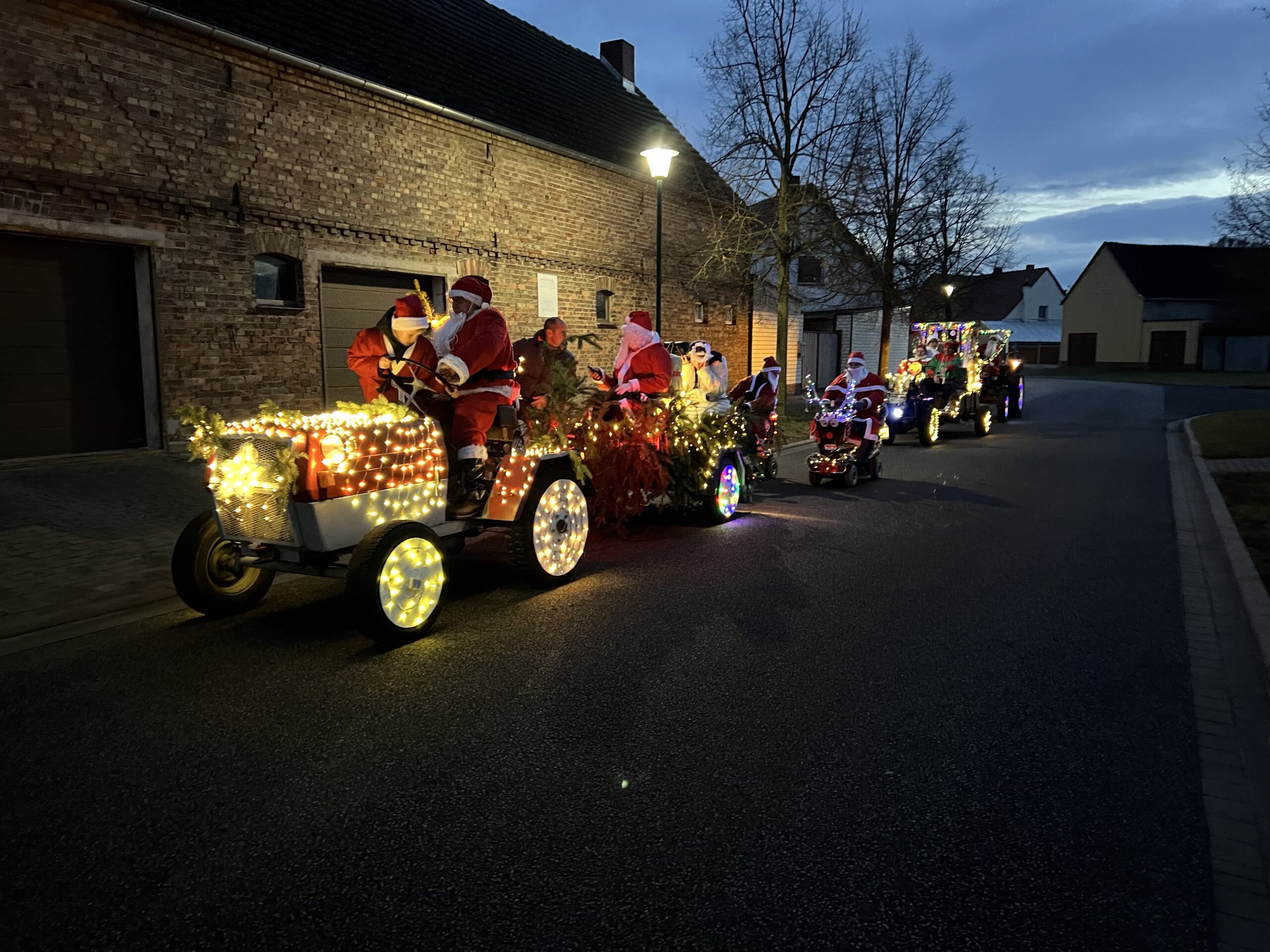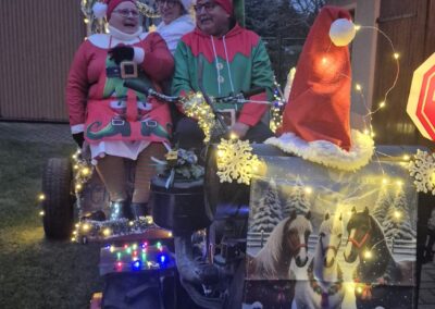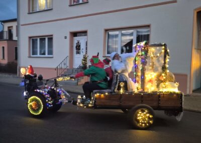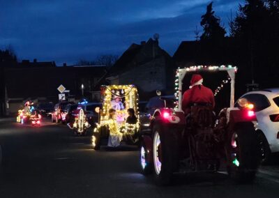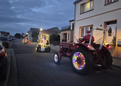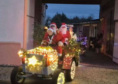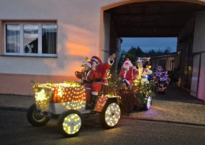 Der Adventsumzug in Rosian ist längst zu einer schönen Tradition geworden. Was einst mit einer Idee von Karl-Heinz Wegner und einem festlich geschmückten Traktor begann, hat sich im Laufe der Jahre zu einem stimmungsvollen Ereignis entwickelt. Von Jahr zu Jahr kamen mehr Teilnehmer hinzu – inzwischen ziehen bereits sechs liebevoll dekorierte Fahrzeuge durch das Dorf. In diesem Jahr führte sogar ein kleiner Nikolaus mit seinem Rollator den fröhlichen Zug an und sorgte für ein besonderes Highlight. Für das leibliche Wohl und die herzliche Betreuung vor und in der Bauernschänke sorgte wie immer der Heimatverein. In dieser festlichen und gemütlichen Atmosphäre wurde auch in Rosian die Adventszeit feierlich eingeläutet. Die große Beteiligung und die durchweg positive Resonanz der Einwohner zeigen deutlich, dass der Adventsmarkt längst zu einem festen Bestandteil unseres Dorflebens geworden ist. Gemeinsam freuen wir uns schon jetzt auf das nächste Jahr, wenn Rosian erneut im warmen Lichterglanz erstrahlt.