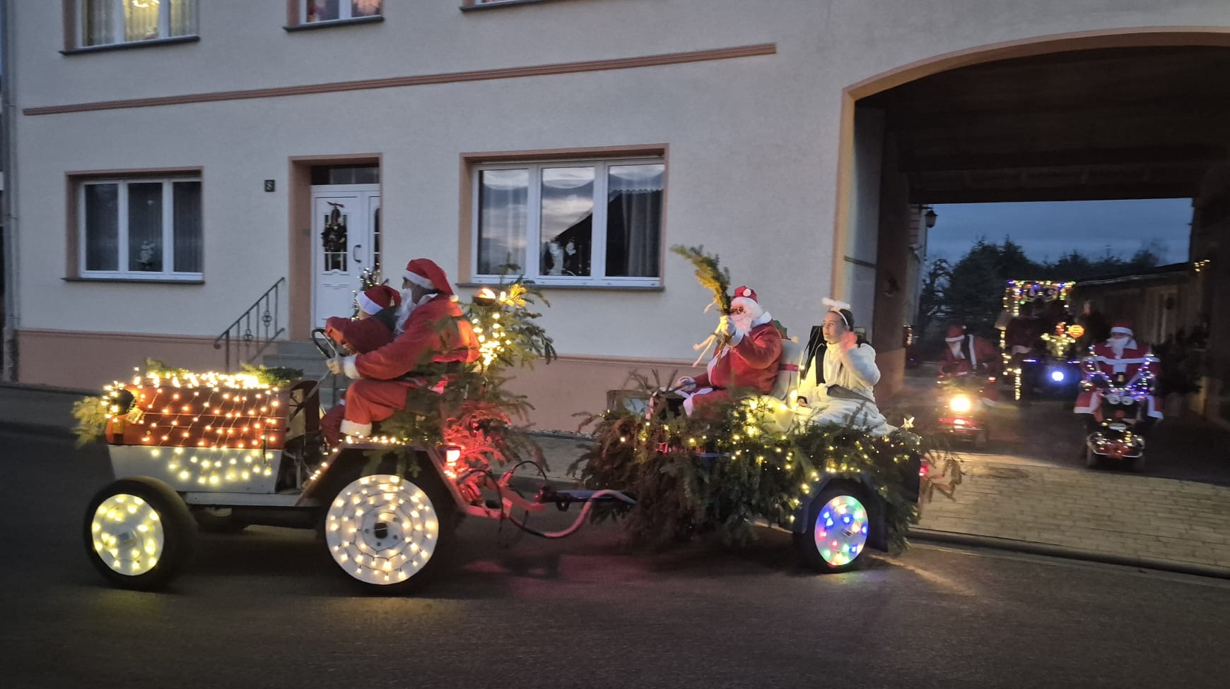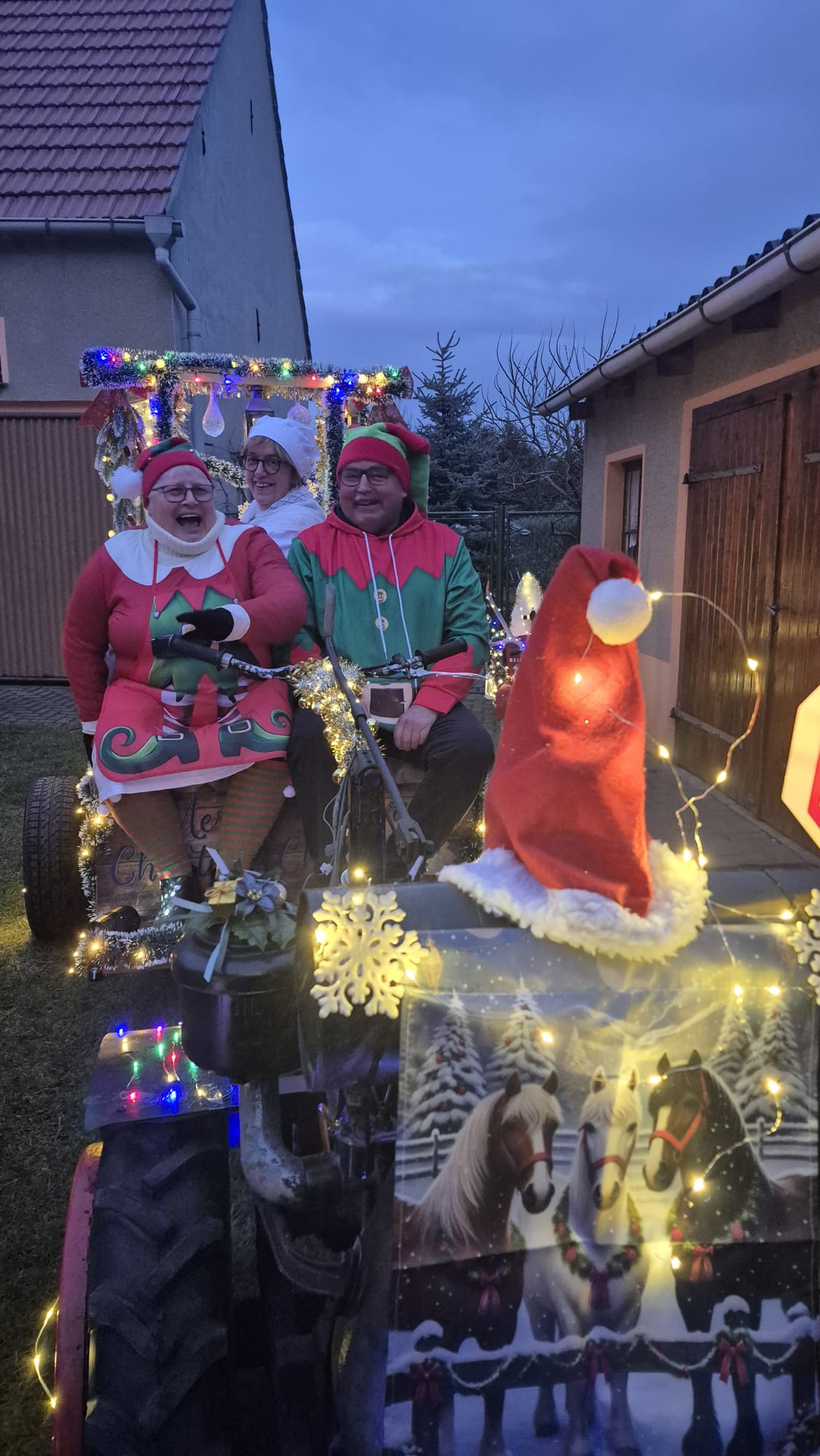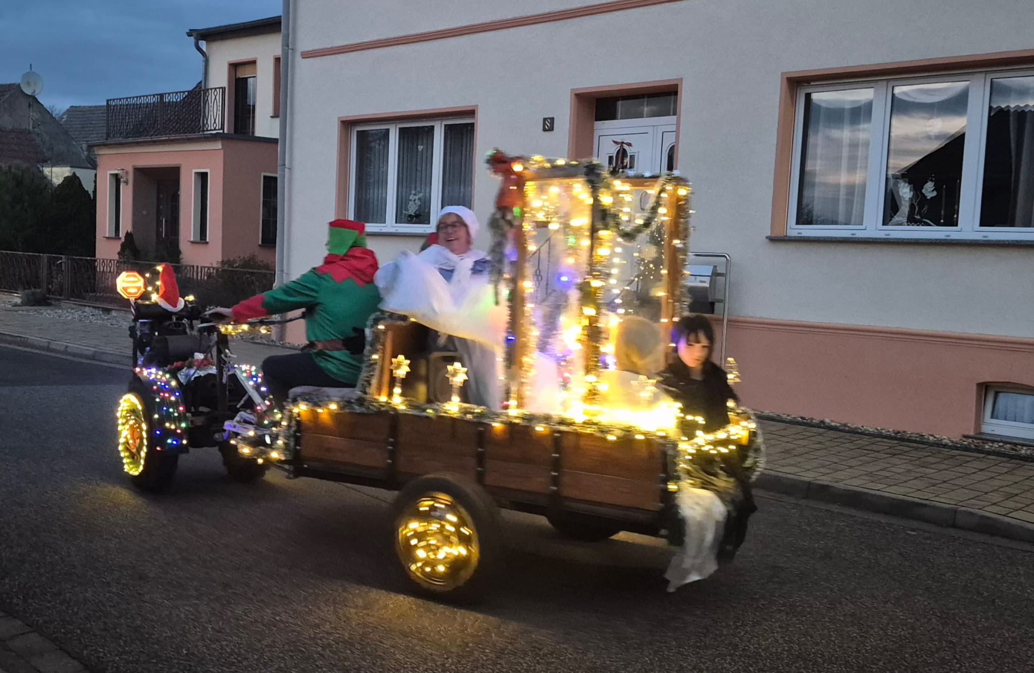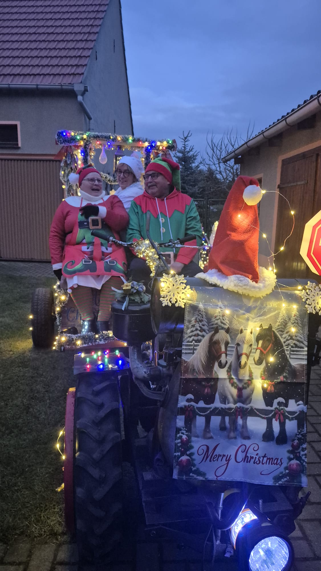 Der Adventsumzug in Rosian ist längst zu einer schönen Tradition geworden. Was einst mit einer Idee von Karl-Heinz Wegner und einem festlich geschmückten Traktor begann, hat sich im Laufe der Jahre zu einem stimmungsvollen Ereignis entwickelt. Von Jahr zu Jahr kamen mehr Teilnehmer hinzu – inzwischen ziehen bereits sechs liebevoll dekorierte Fahrzeuge durch das Dorf. In diesem Jahr führte sogar ein kleiner Nikolaus mit seinem Rollator den fröhlichen Zug an und sorgte für ein besonderes Highlight. Für das leibliche Wohl und die herzliche Betreuung vor und in der Bauernschänke sorgte wie immer der Heimatverein. In dieser festlichen und gemütlichen Atmosphäre wurde auch in Rosian die Adventszeit feierlich eingeläutet. Die große Beteiligung und die durchweg positive Resonanz der Einwohner zeigen deutlich, dass der Adventsmarkt längst zu einem festen Bestandteil unseres Dorflebens geworden ist. Gemeinsam freuen wir uns schon jetzt auf das nächste Jahr, wenn Rosian erneut im warmen Lichterglanz erstrahlt.